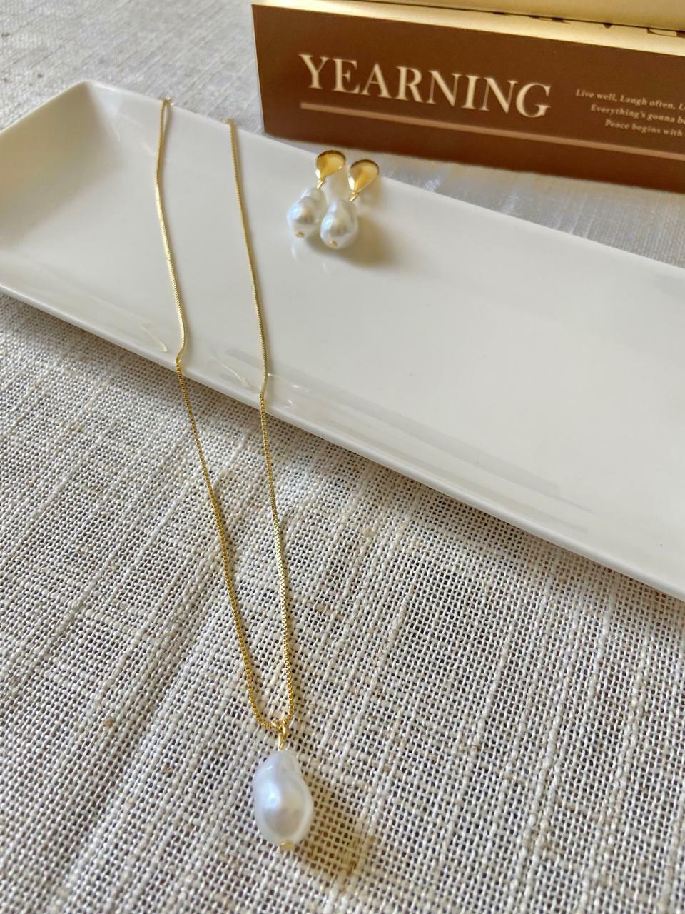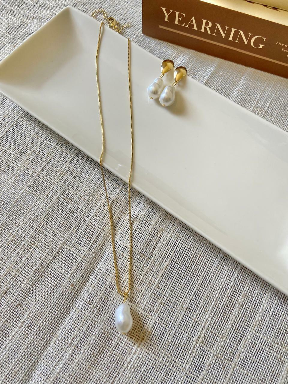 Deixe-se encantar pelo Conjunto Pérola Barroca Banho Ouro 18k! Esta joia única combina a beleza natural das pérolas barrocas com a sofisticação do banho de ouro 18k, criando um visual deslumbrante.